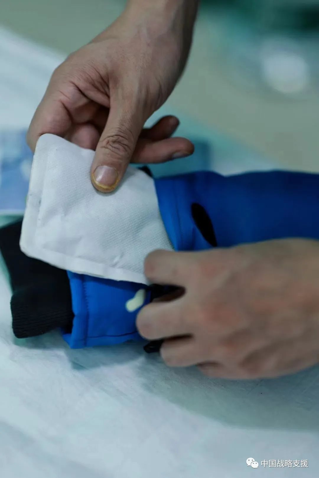 4. 手套背部内部新增一个大约6乘以5厘米的活动夹层,这一情景展现了战略支援部队特色医学中心神舟医疗救护队,