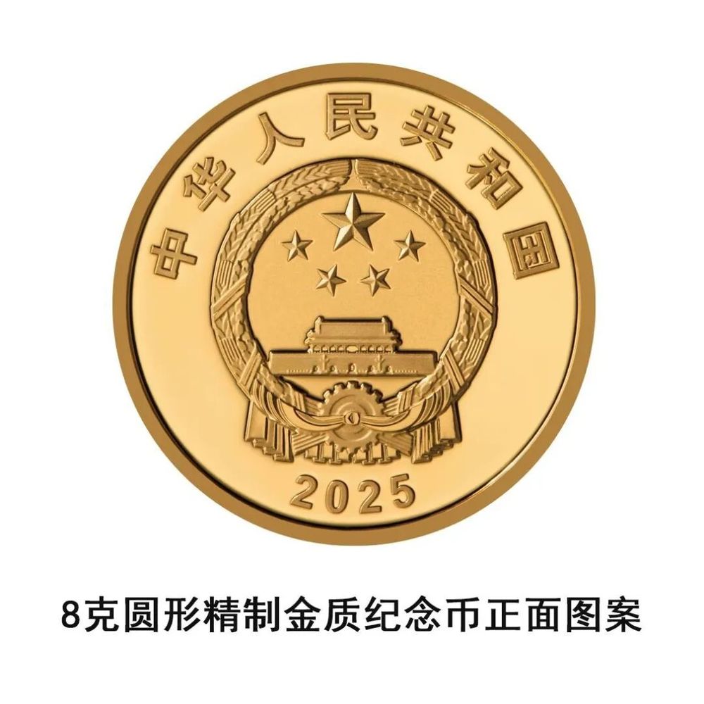 二、并且直径为22毫米,在其下方印有年号“2025”。由人民英雄纪念碑上的“抗日游击战”浮雕和卢沟桥等元素构成,金银纪念币的尺寸及发行数量