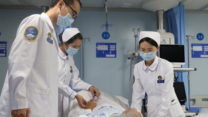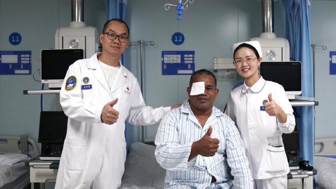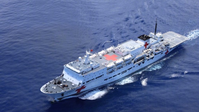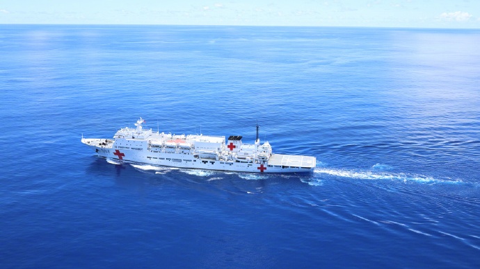 “丝路方舟”号医院船缓缓离开瑙鲁艾沃港,院船