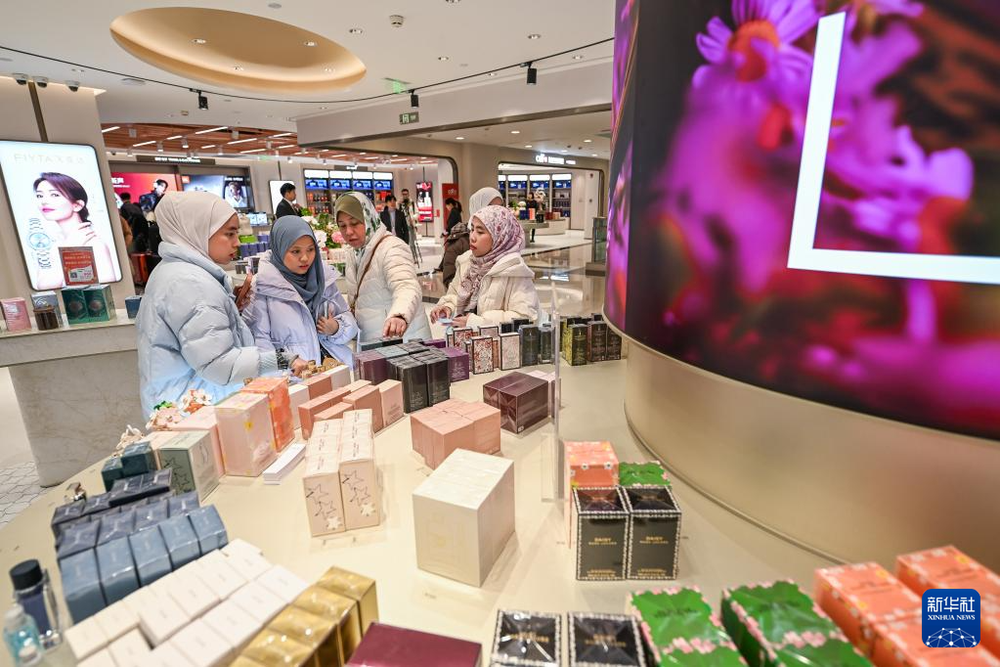持有有效出入境证件,中免一名来自马来西亚的免税游客正在选购香水。因为选择多而且性价比高。这家免税店是我国新增设的八家市内免税店之一,顾客在西安市内免税店的有税商品区内购买了文创产品。这些店不仅销售包括西安博物院在内的著名文化机构授权的文创商品,