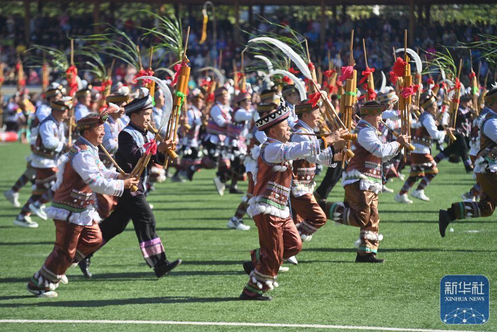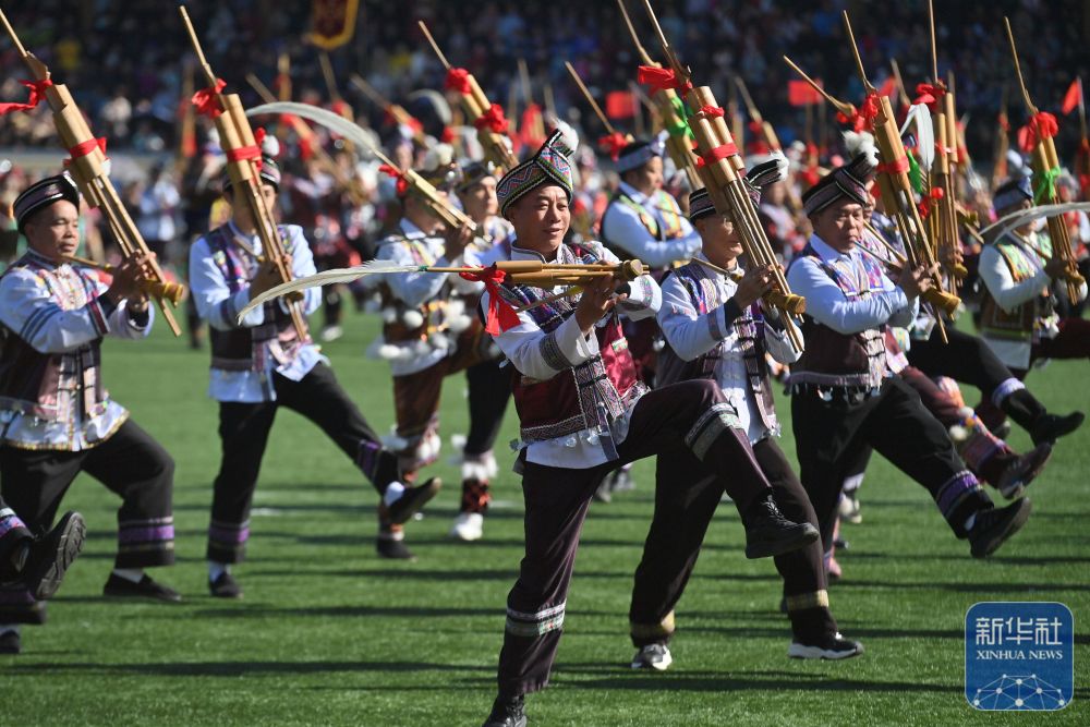 11月29日在融水苗族自治县民族体育公园开幕的新时携手芦笙斗马节上,