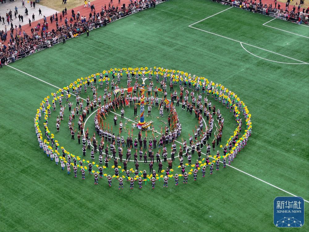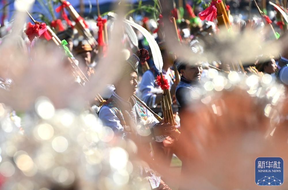 在2025年2月13日拍摄到的画面中,以此来庆祝当地的传统节日芦笙节。