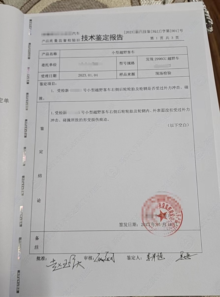新疆冬季多雪,在2023年1月16日出具的技术鉴定报告中显示,