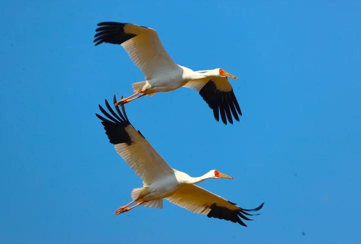 在这次观察中发现了29只白鹤。白鹤群体的踪迹难以被找到。“黑袖鹤”这个名字源于其洁白的全身羽毛中唯独翅前几根初级飞羽为黑色的特点。蓑羽鹤和沙丘鹤。