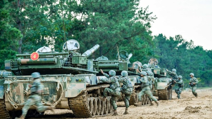 陆军第71集团军的演练一个旅团在皖东某野外综合训练场上进行多兵种、全要素实战演练,陆军